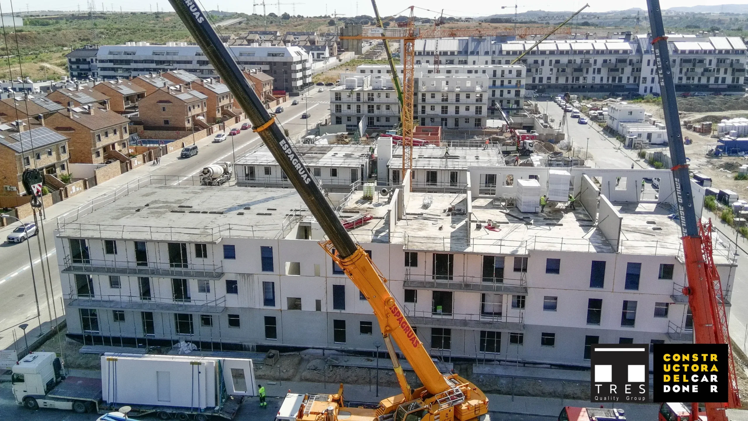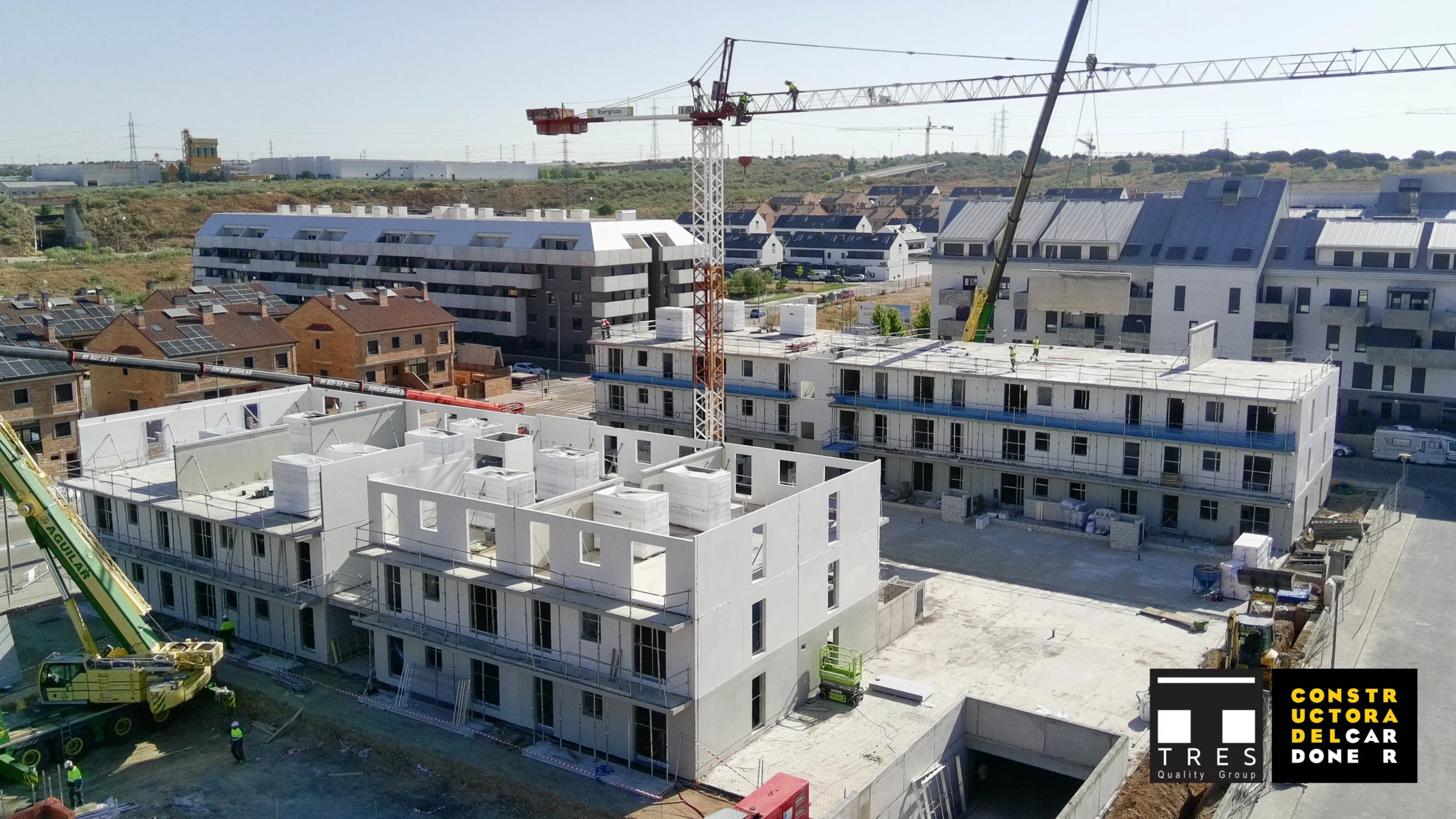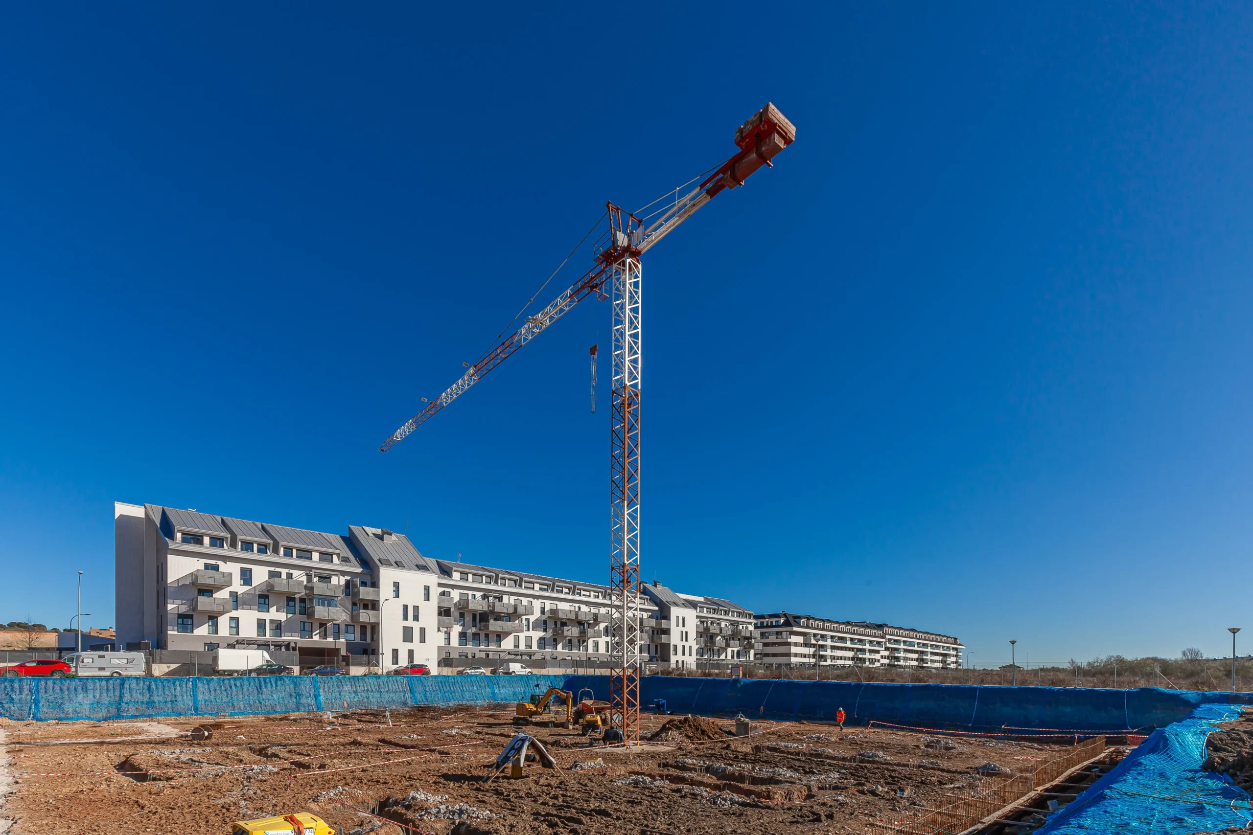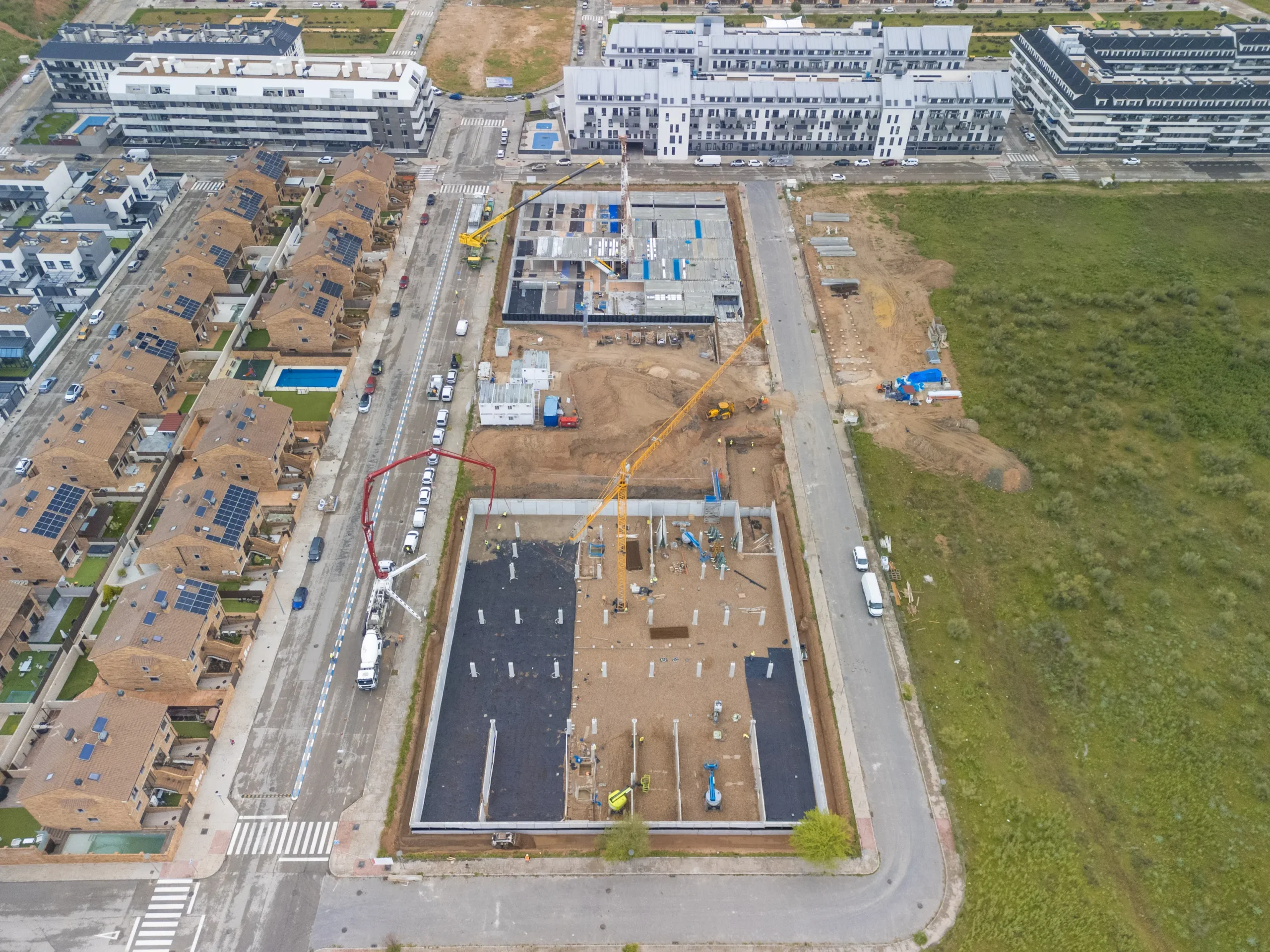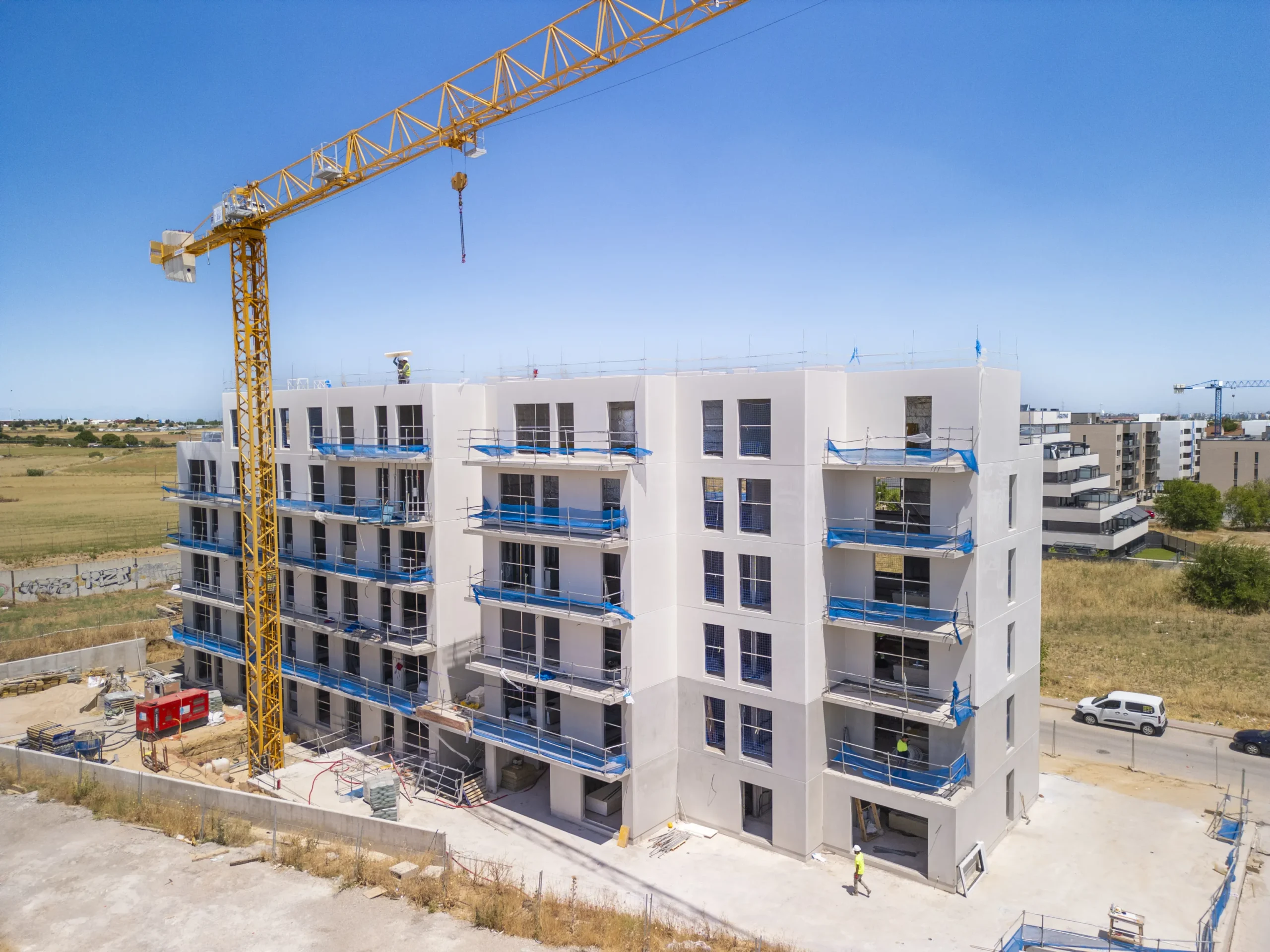 Velilla de San Antonio: 152 viviendas en un entorno diseñado para la vida comunitaria, con amplias zonas verdes y servicios compartidos.