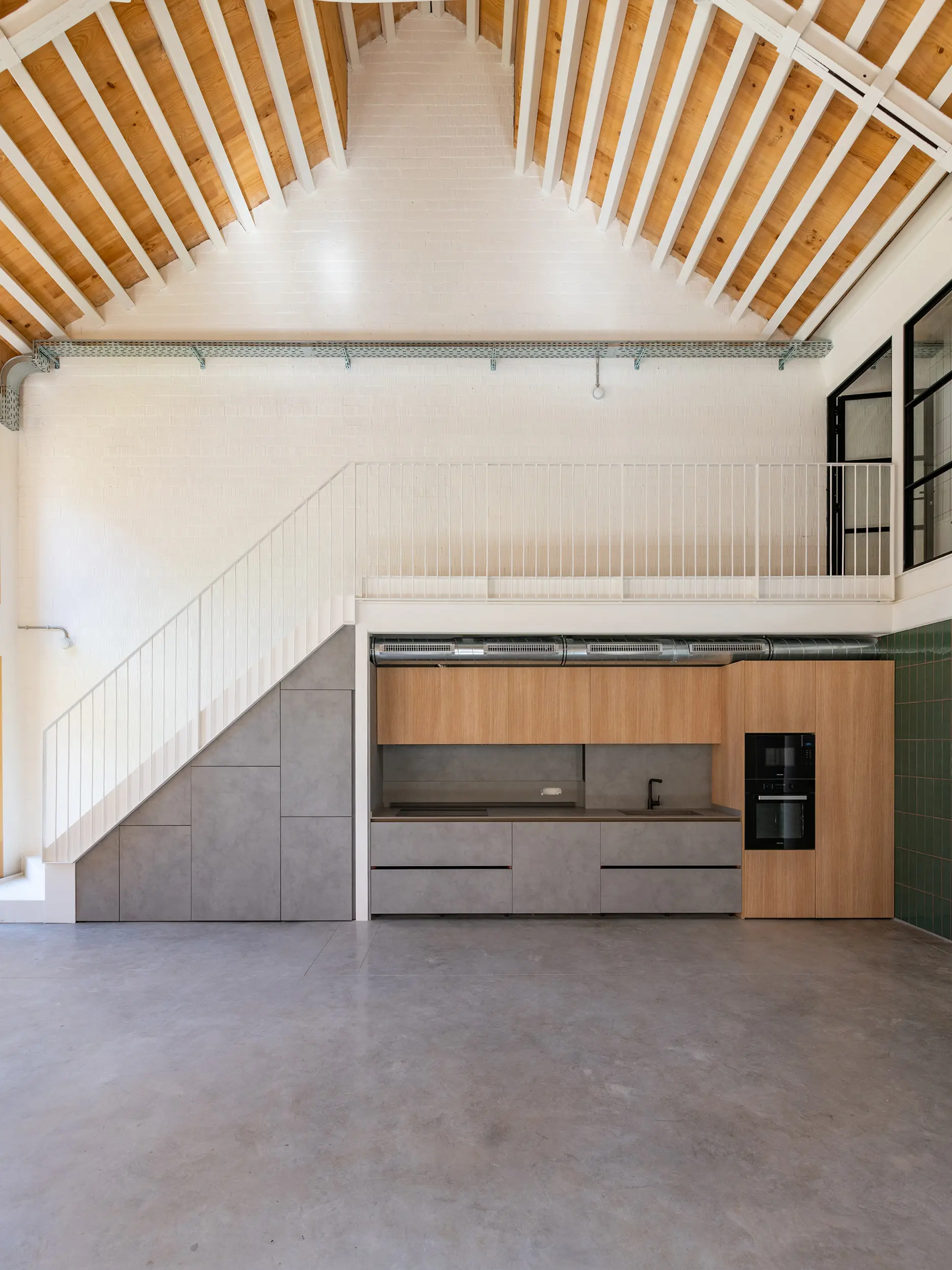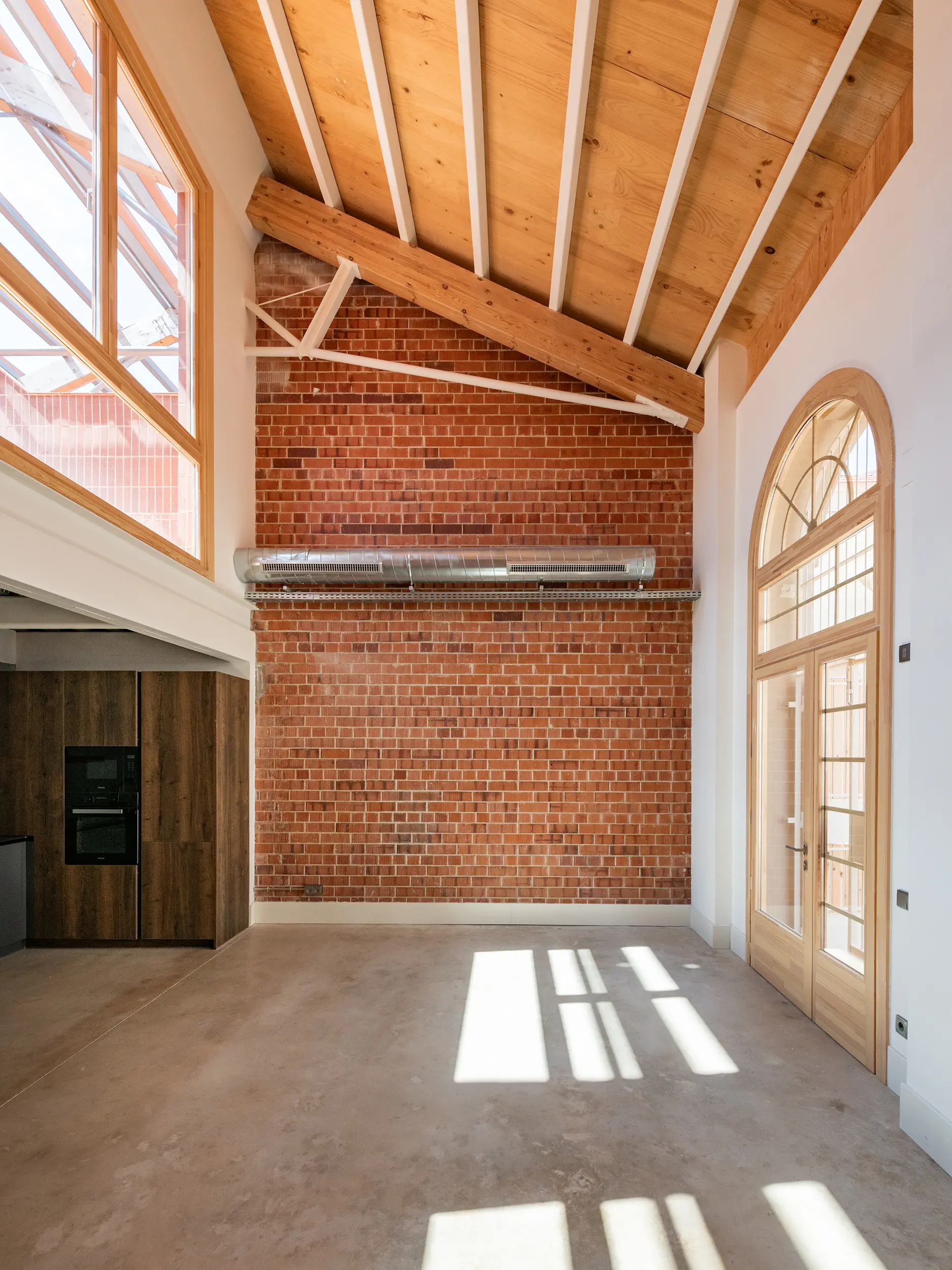 Nuestra intervención respeta el valor patrimonial de Can Ricart, declarado Bien Cultural de Interés Nacional, llevando a cabo una rehabilitación que ha permitido la creación de 10 viviendas. Gracias a una coordinación técnica exigente, logramos la integración de nuevas estructuras en los edificios preexistentes, haciendo uso de soluciones constructivas adaptadas a la realidad física de cada nave.