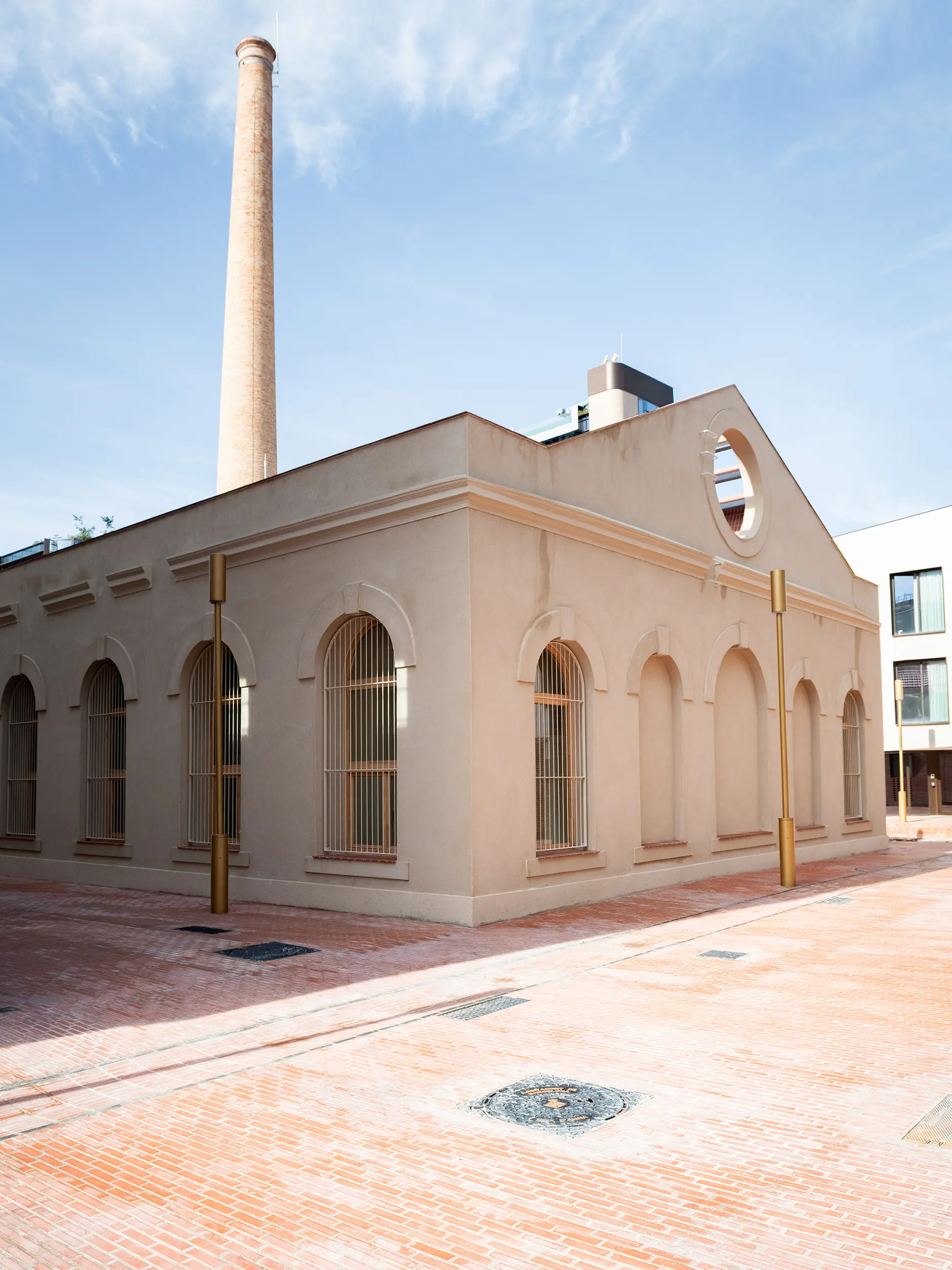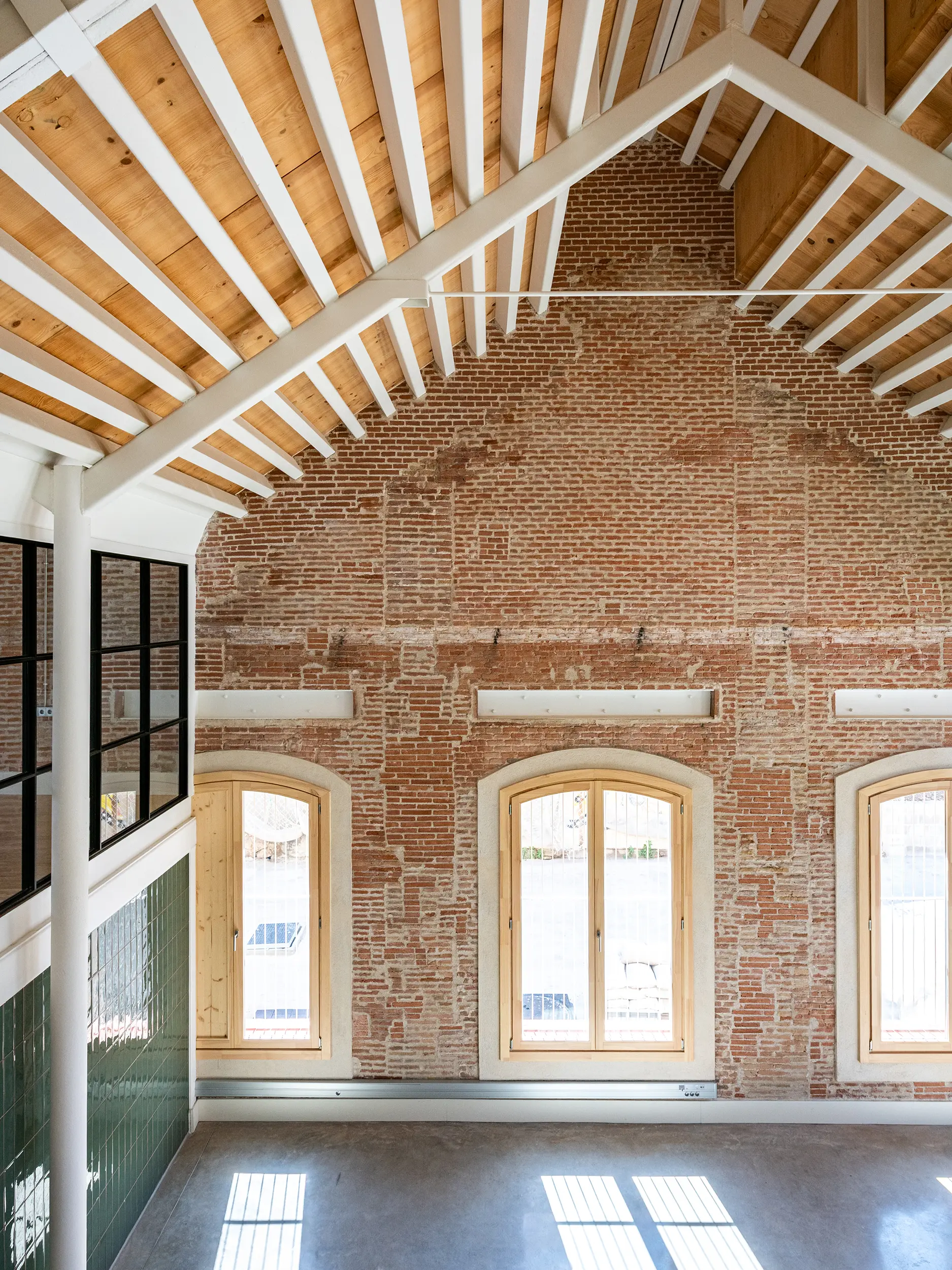 Para poner en valor el pasado industrial de las naves, la construcción se adaptó a sus singularidades arquitectónicas, con el objetivo de mantener la estructura y la estética industrial originales.