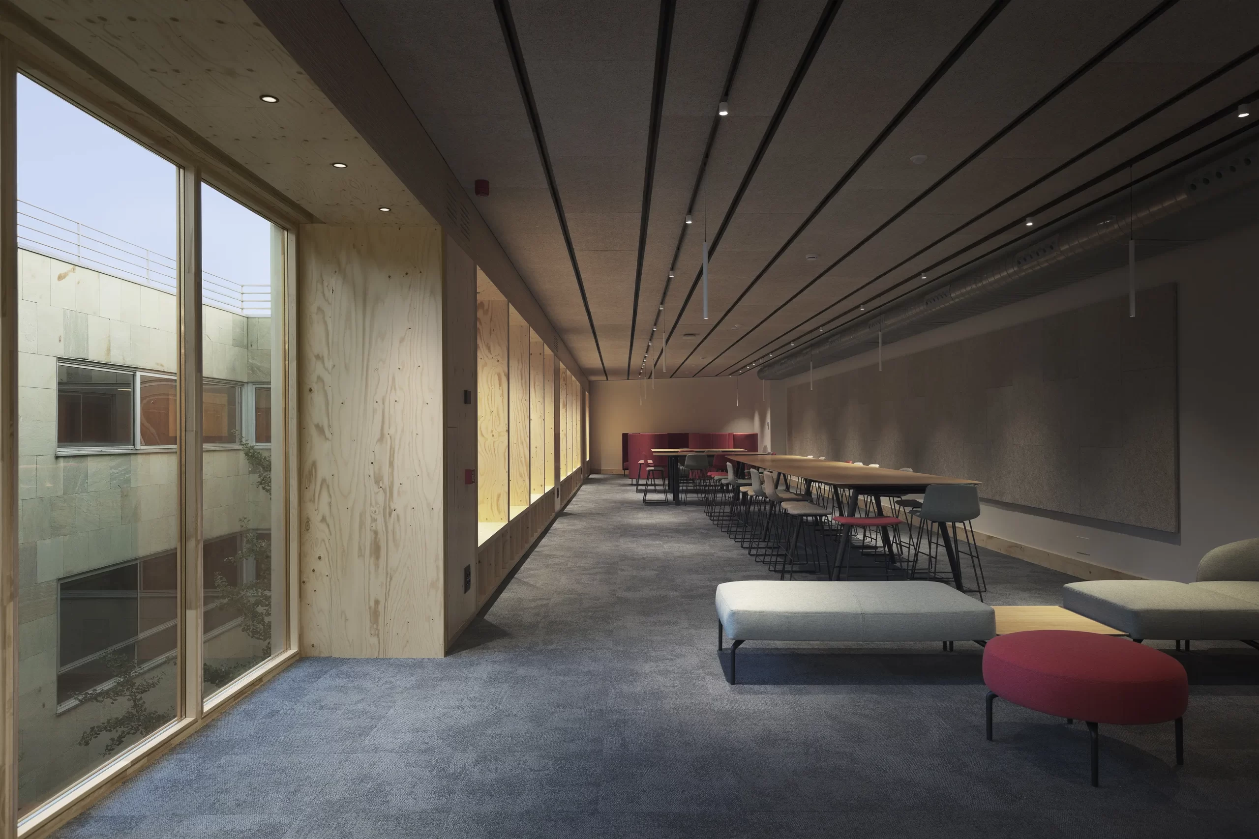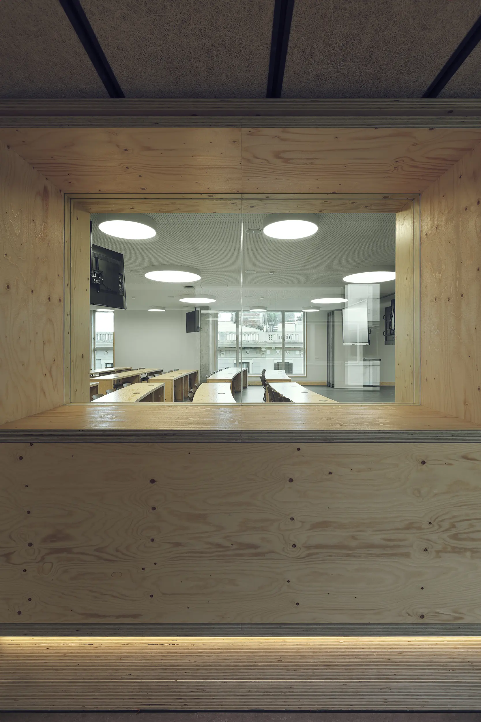 - Hemos redistribuido una planta anteriormente muy compartimentada, con despachos y pequeñas aulas, para transformarla en un espacio moderno, amplio y plenamente adaptado al uso universitario actual. El resultado es una planta docente con aulas, espacios de trabajo colaborativo, salas de reunión y un ágora, diseñados de manera flexible para dar respuesta a las diferentes necesidades de la docencia contemporánea.