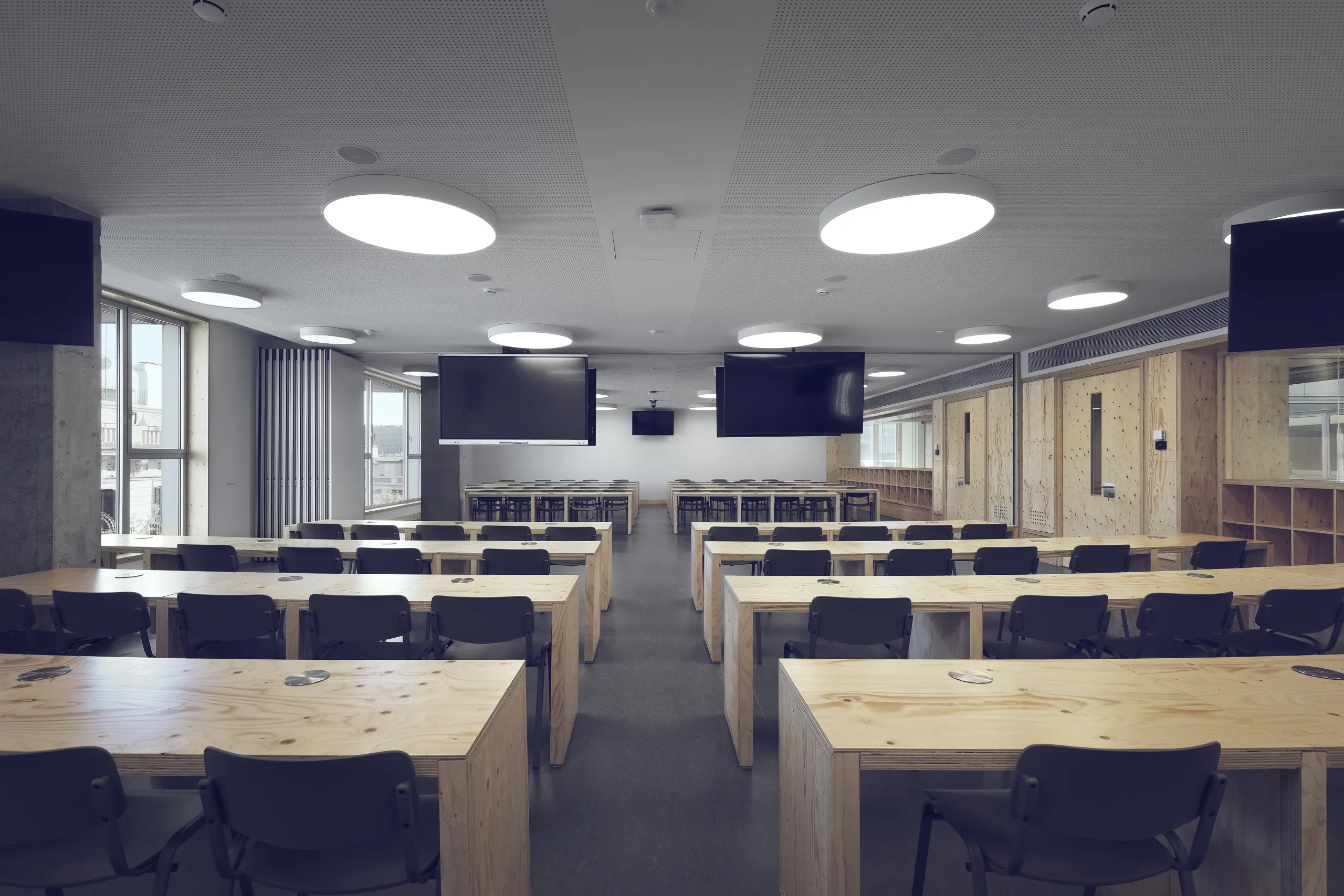- Iluminación eficiente adaptada a normativas educativas.