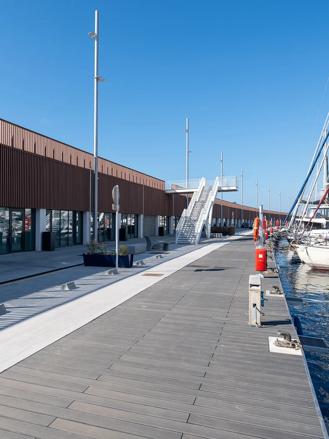 - Diseño de un espacio público duradero y de bajo mantenimiento, adaptado a las condiciones agresivas del entorno marino.
