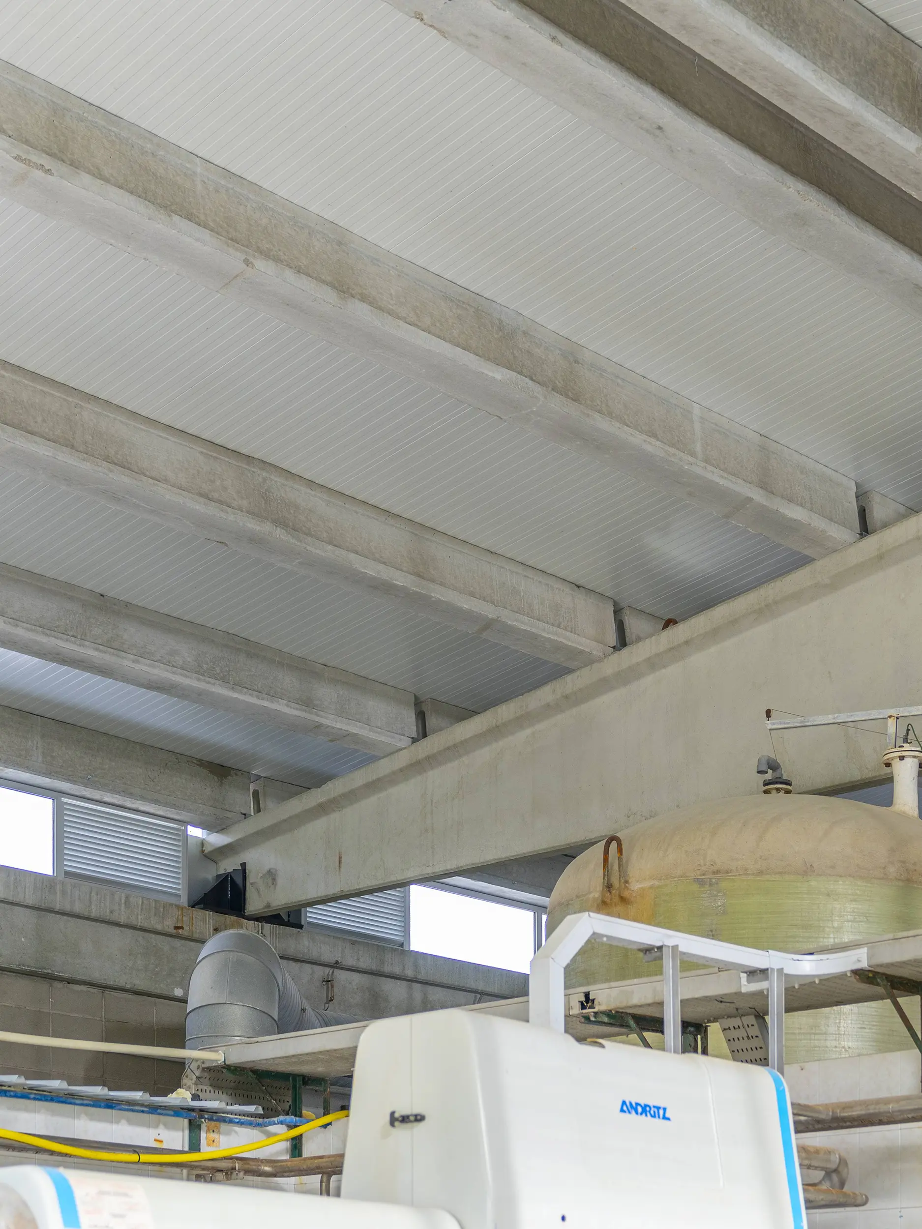 - La actuación ha permitido mejorar la estanqueidad, la durabilidad y la eficiencia energética del edificio, gracias a la sustitución de la cubierta existente por un nuevo sistema de vigas, viguetas de hormigón armado y panel sándwich metálico aislado térmicamente y con acabados anticorrosivos. Asimismo, la intervención ha asegurado un entorno de trabajo más seguro y eficiente para el personal técnico de la EDAR.