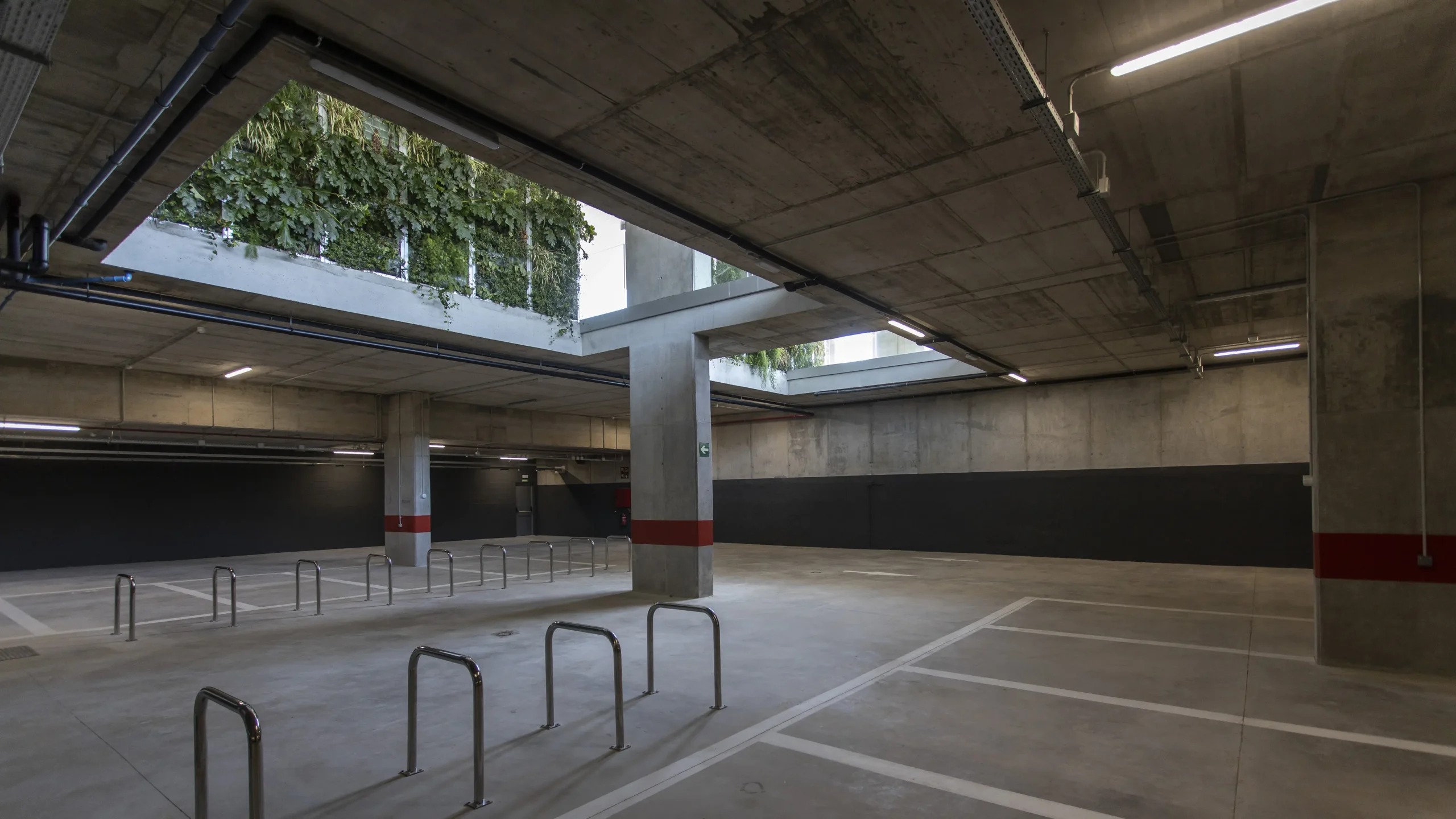 - La estructura del edificio se ha realizado con soluciones estructurales de hormigón optimizadas para permitir espacios diáfanos y grandes luces. De esta manera, se ha logrado la optimización de las plantas tipo, permitiendo múltiples configuraciones de uso.