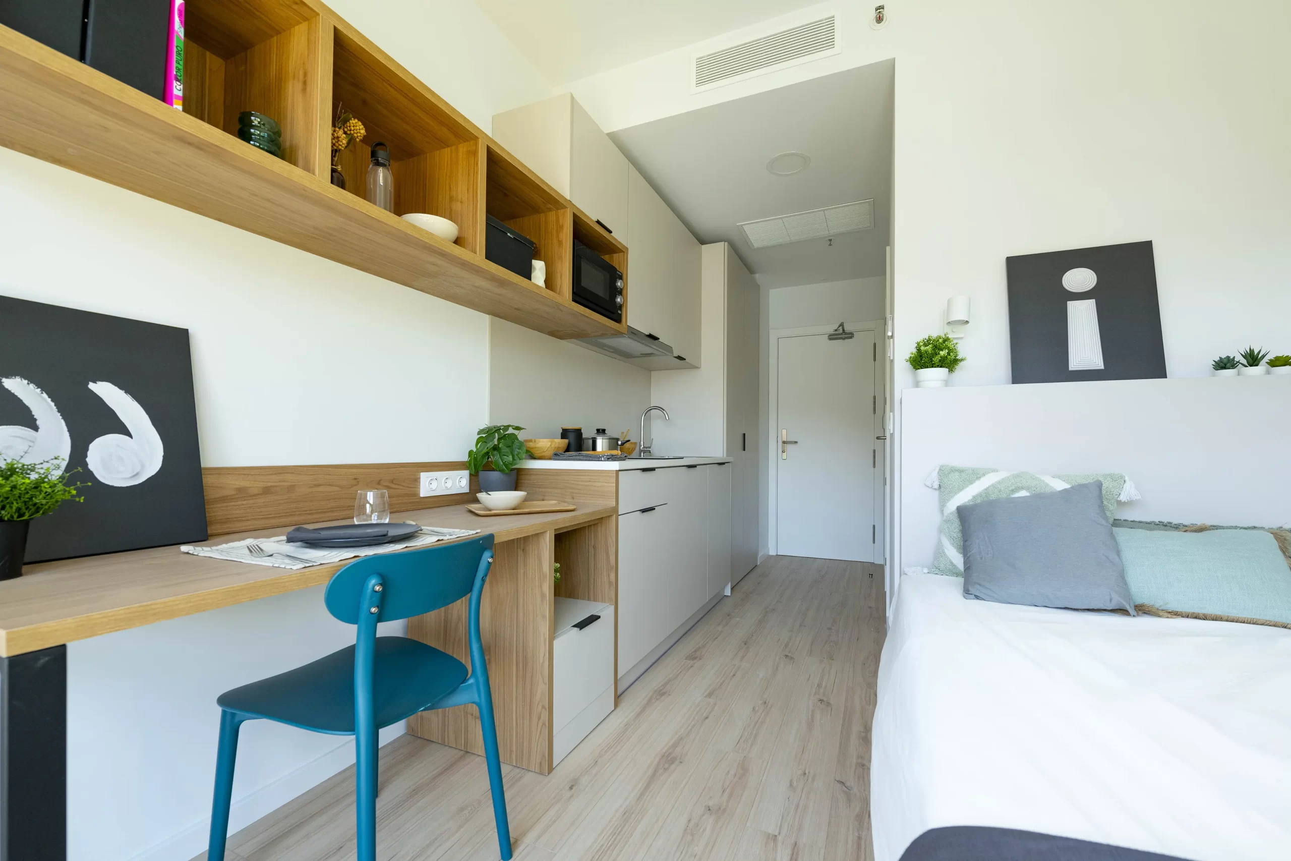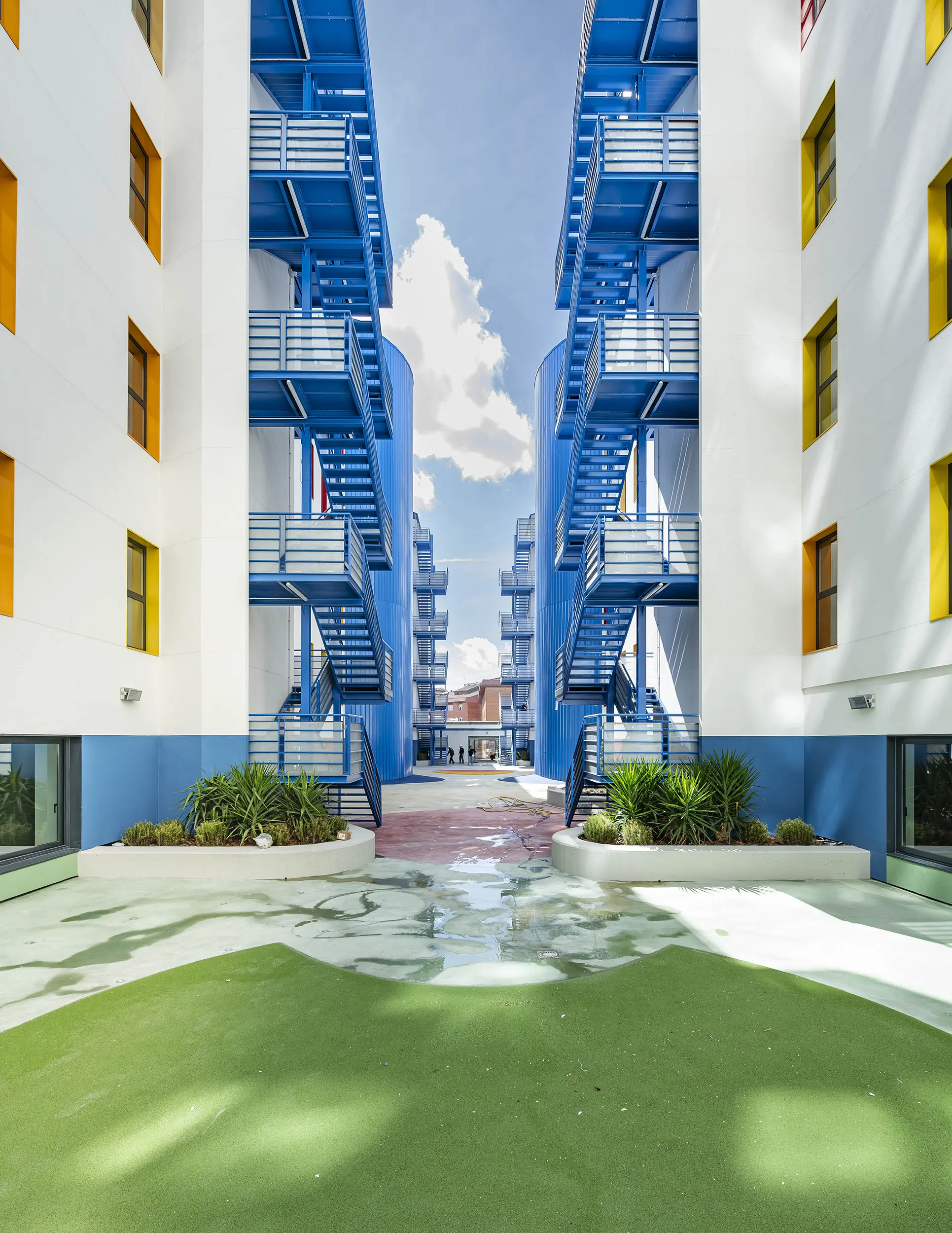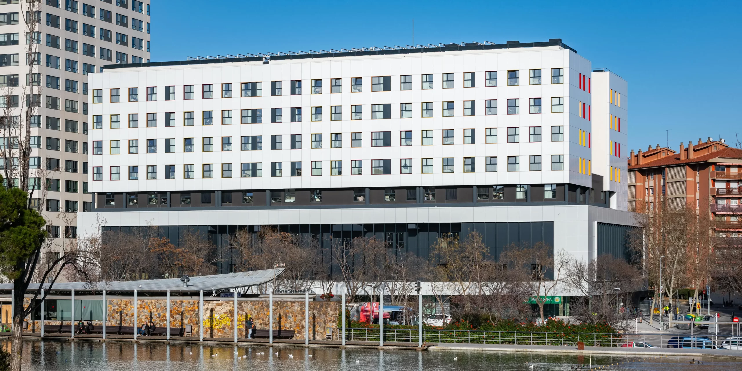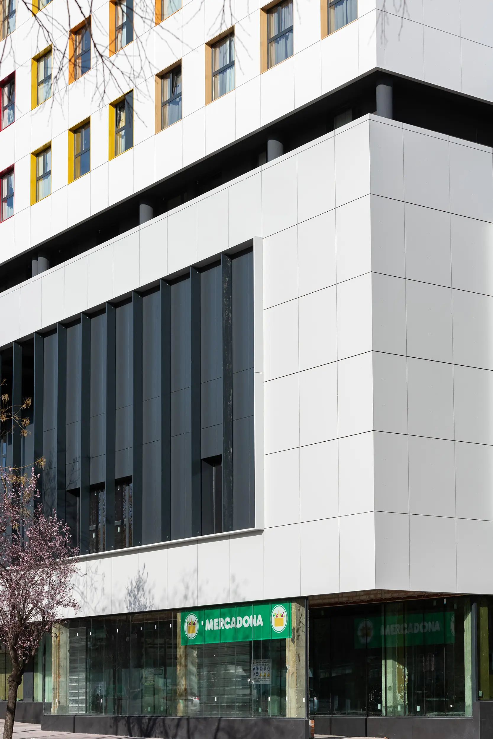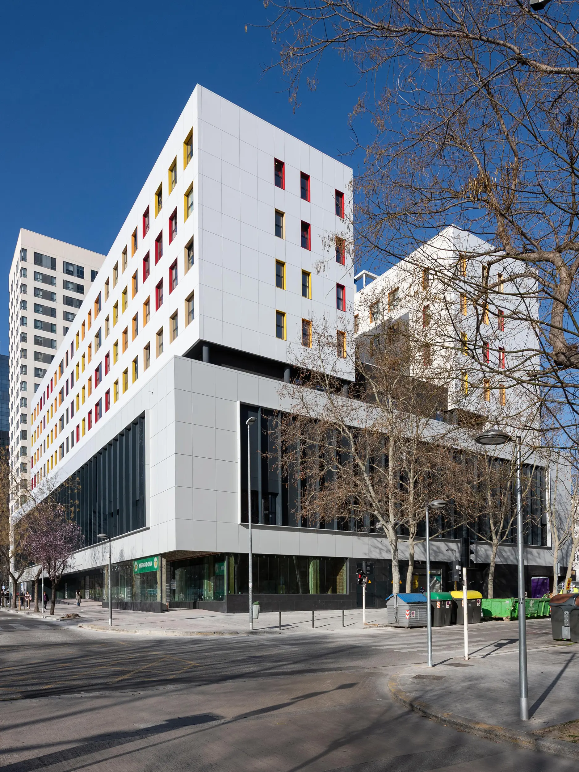 El proyecto consiste en la rehabilitación integral del edificio situado frente al Parc de Catalunya, en Sabadell, con el objetivo de darle una nueva vida y adaptarlo a las necesidades actuales. Se mantiene el uso comercial de la planta baja, que continúa funcionando como centro comercial, mientras que los dos cuerpos superiores, anteriormente destinados a oficinas, se han reconvertido en una moderna residencia de estudiantes.