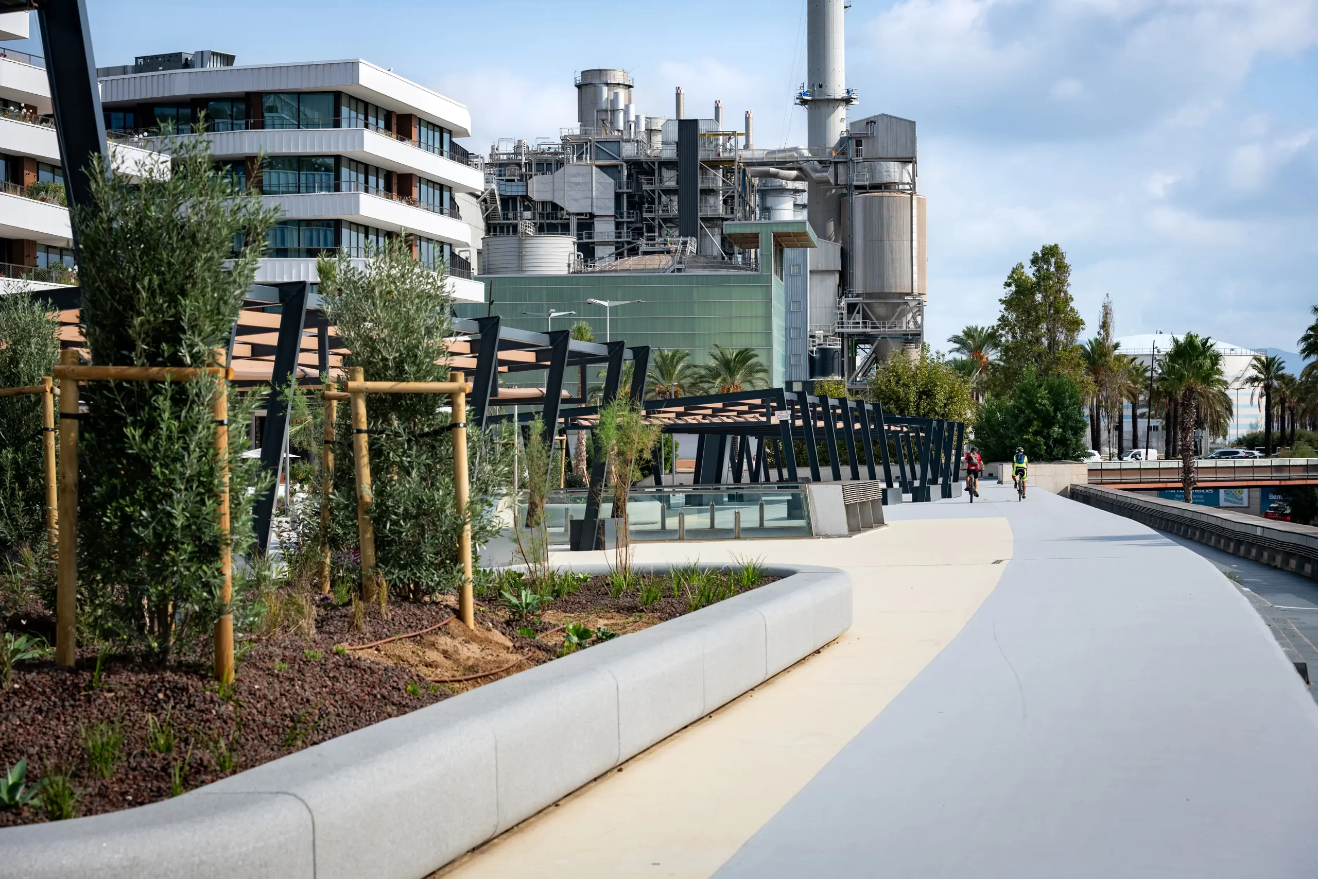 El proyecto ha supuesto un incremento significativo de la superficie verde en un entorno altamente artificializado, incorporando una urbanización de calidad con nuevos espacios verdes, alumbrado eficiente y mobiliario urbano integrado. Se ha ejecutado un paseo marítimo funcional y respetuoso con el entorno, que destaca por su alto valor paisajístico y social. Al mismo tiempo, se ha mejorado la conexión costera entre Barcelona y Sant Adrià, configurando un recorrido que pone en valor el espacio público y la relación con el litoral.